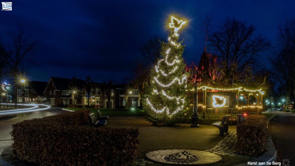 Een Vredesduif siert dit jaar de kerstboom aan de Berg. Niet helemaal ongeschonden, helaas, door een voortijdige valpartij van de inmiddels prachtig verlichte boom. Mooi om vast te mogen leggen hoe de bewoners rond het plein aan de Berg hun jaarlijkse boom in...