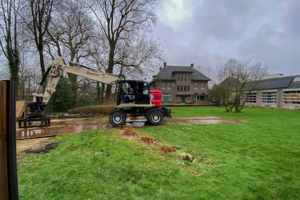 Voorbereidende werkzaamheden gestart. Na de tijdelijke verwijdering van het hekwerk/schutting aan de kant van de Jan van Ammerzoyenlaan is gestart met het leggen van rijplaten om de ondergrond van de binnentuin te beschermen. Meer info:...