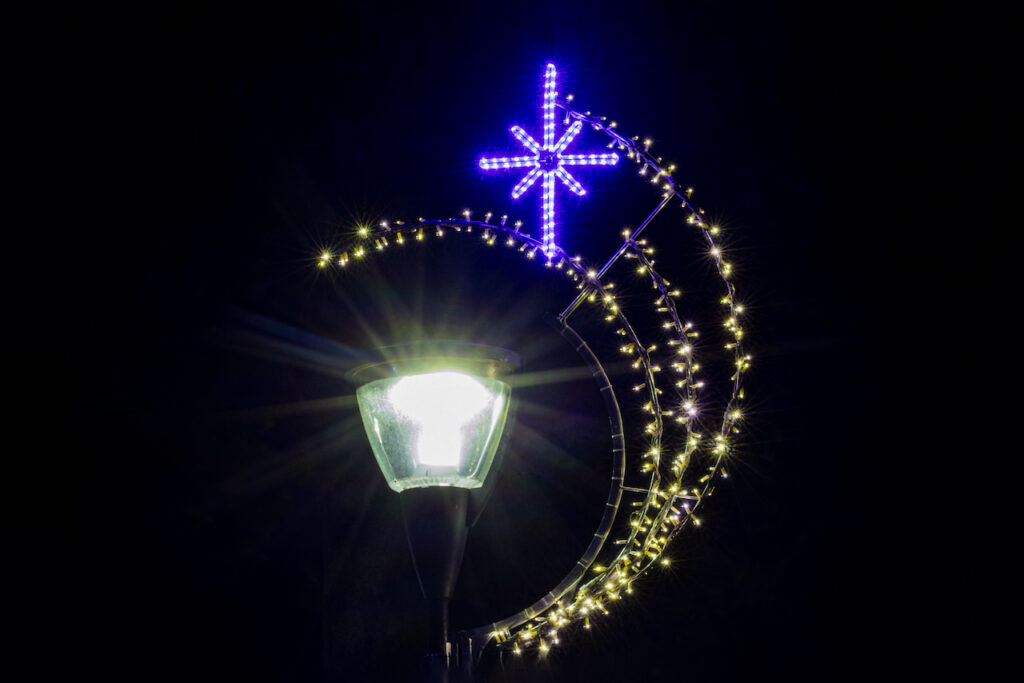 Kerstsfeer verschijnt in het straatbeeld Deze week waren mannen van MK Illumination Holland in Nuenen in de weer om de plantenbakken te vervangen door sfeerverlichting. Chris poseert met een van de lichtornamenten. Daarbij blijkt dat de ornamenten op de grond...