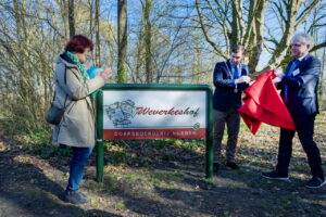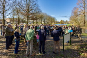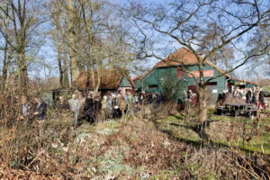Vervolgens verplaatst het gehele gezelschap zich naar de ingang van de Dorpsboerderij voor de openingshandeling.