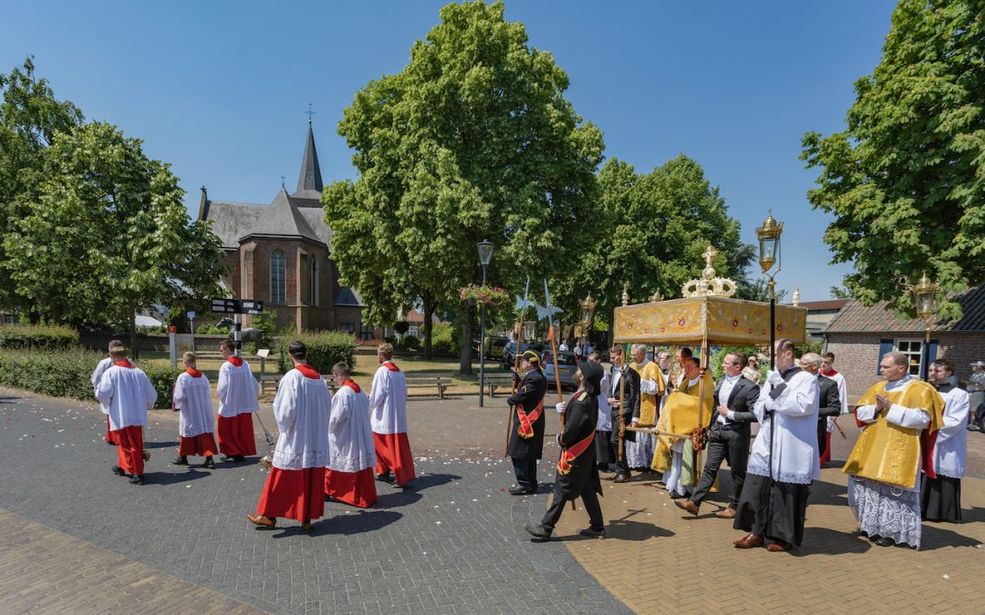In Gerwen is zondagmiddag een lange processie door het dorp getrokken. Het is een traditie tijdens Sacramentsdag in juni.
