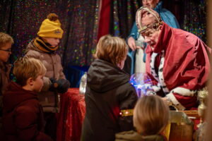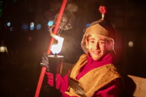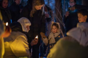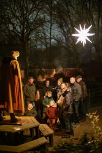 Burgemeester Freek van Genugten sloot zich met z’n gezin ook aan bij de reizigers, die van de geboorte van een nieuwe koning gehoord hadden.