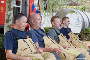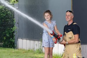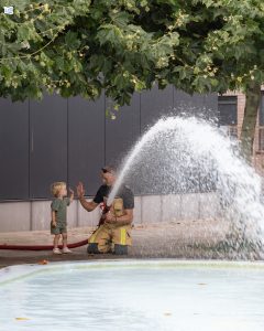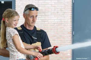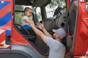 “Hoog hè?, zo’n rode brandweerauto in het echt…”