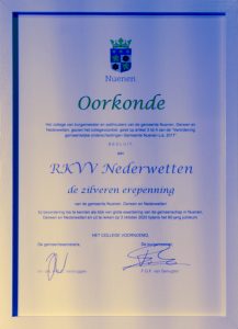 Met deze zilveren gemeentelijke onderscheiding wil het gemeentebestuur, uit naam van alle inwoners in het algemeen en voor de leden van RKVV Nederwetten in het bijzonder, zijn waardering en erkentelijkheid uitdrukken.